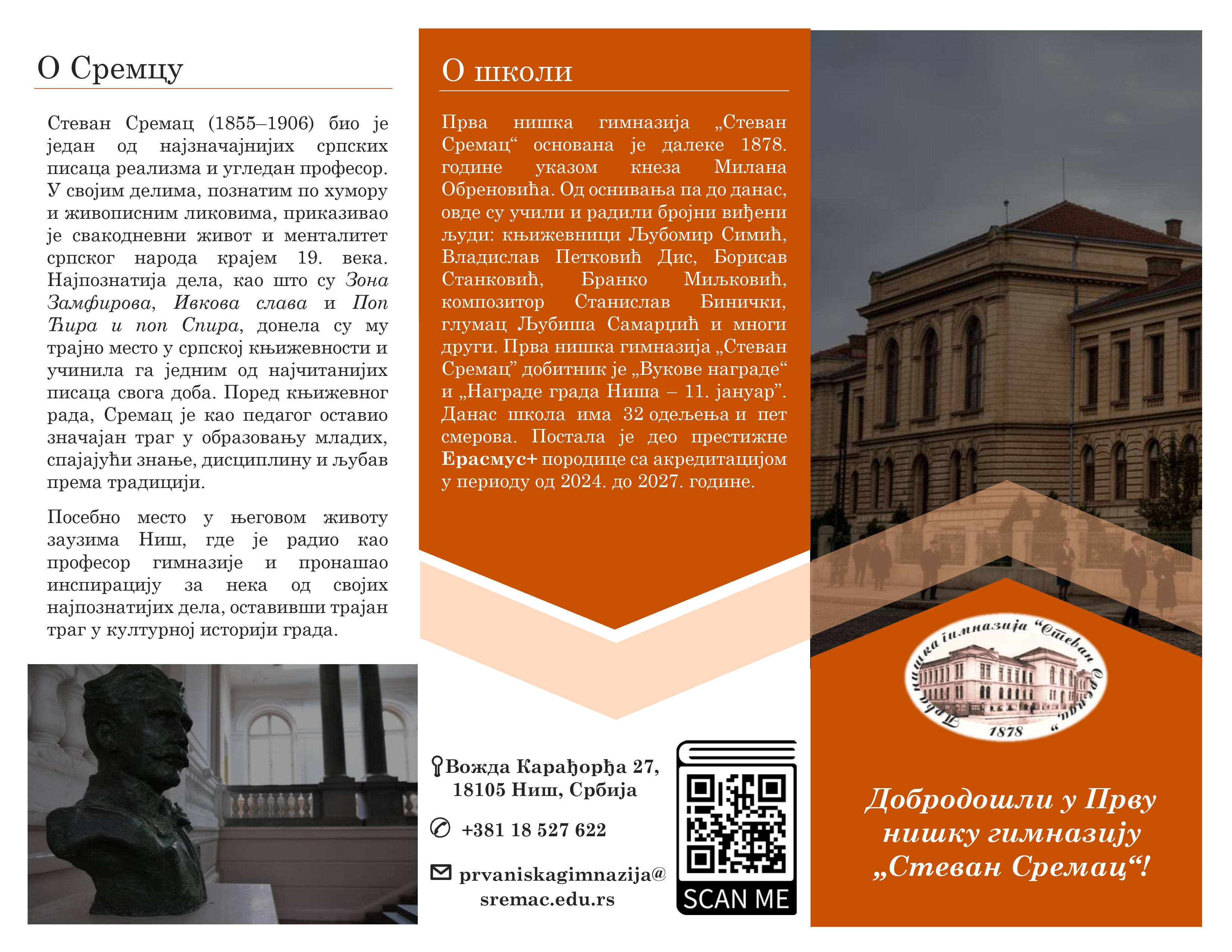 Обавештавамо вас да Прва нишка гимназија „Стеван Сремац“ ове школске године уписује: